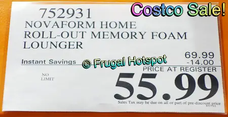 The Novaform Memory Foam Roll Out Lounger is on sale at select Costco locations for $55.99, now through September 13, 2022. That is $14 off Costco’s regular price of $69.99. Item #752931. While supplies last.