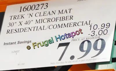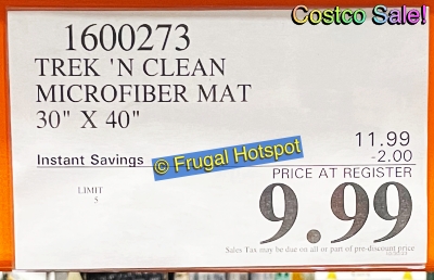 The Trek N’ Clean Microfiber Floor Mat is on sale at select Costco locations for $9.99, through January 27, 2025. That is $2 off Costco’s regular price of $11.99. While supplies last. Prices, inventory, and sale dates may vary by location and may change at any time without notice. To see if your local Costco carries this item, give them a call and ask about item #1600273 or check the Costco app.