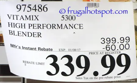 This upgraded version of the Vitamix 5200S will actually fit under most kitchen cabinets. Costco has the Vitamix 5300 High Performance Blender on sale for $339.99 (after manufacturer’s instant rebate), now through September 24, 2017. That is $60 off Costco’s regular price of $399.99. While supplies last. Color selection may vary by location.