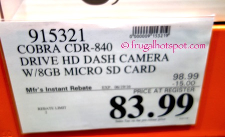Record your ride. Costco has the Cobra CDR-840 Drive HD Dash Camera on sale for $83.99 (after manufacturer’s instant rebate), now through June 19, 2016. That is $15 off Costco’s regular price of $98.99. While supplies last.
