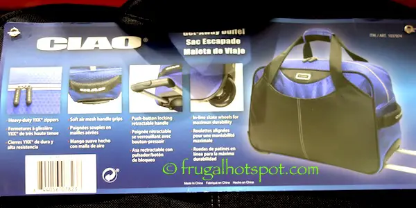 Packing light? Costco has the Ciao Get-Away Duffel Rolling Overnighter on sale for $24.99 (after manufacturer’s instant rebate), now through August 20, 2017. That is $5 off Costco’s regular price of $29.99. While supplies last. Color selection may vary by location.