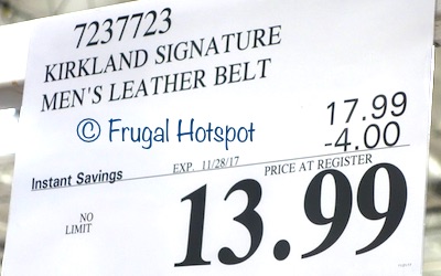 Select Costco stores have the Kirkland Signature Men’s Leather Belt on sale for $13.99, through December 24, 2017. That is $4 off Costco’s regular price of $17.99. While supplies last. Price and participation may vary by location. Item #7237723.