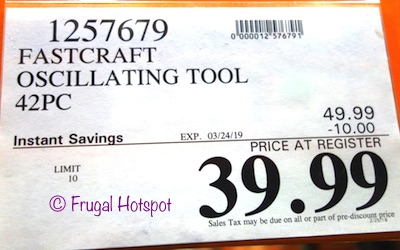Doing some home repairs? Select Costco locations have the FastCraft 42-Piece Oscillating Multi-Tool Set on sale for $39.99 (after instant savings), now through March 24, 2019. That is $10 off Costco’s regular price of $49.99. While supplies last. Item #1257679.