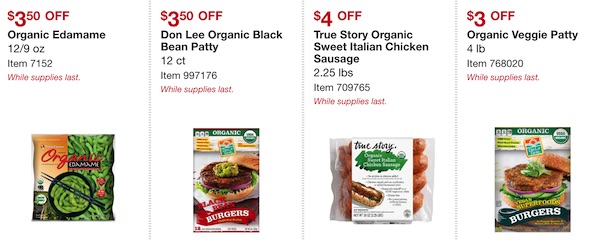 Organic Edamame 12/9 oz $11.49 -$4= $7.49 (My local Costco has it $4 off while the coupon booklet has it for $3.50 off)