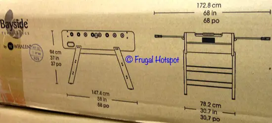 58″ L x 30.7″ W (68″ W with steel rods) x 37″ H