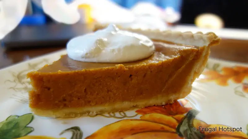 Costco’s Kirkland Signature Pumpkin Pie costs $5.99 or $6.99, depending on your location, under Costco Item #60809. For a pie that’s 58 ounces, that’s an amazing price and much cheaper than other bakeries that make a comparable pumpkin pie. Plus, it’s big enough to feed family and friends during the holidays.