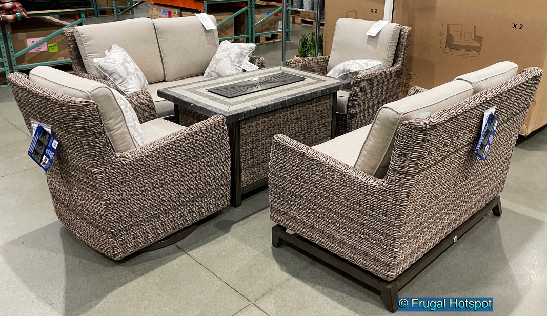 The Agio Anderson 5-Piece Woven Seating Set with Fire is available at select Costco locations for $2,999.99, while supplies last. Prices and inventory may vary by location and may change at any time without notice. To see if your local Costco carries this item, give them a call and ask about Item #2327740.